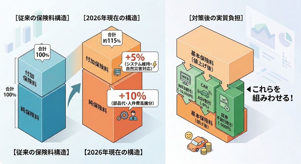 | 2026年版:保険料値上げの背景と対策 | 物価高による値上げを、最新の割引制度で相殺する具体的な方法。 |